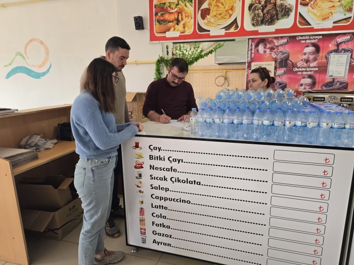 Komisyon Başkanı Doç. Dr. Murat Kesebir ile komisyon üyeleri Arş. Gör. Emre Ezin ve Arş. Gör. Pelin Sultan Kara tarafından yapılan değerlendirmede; kantinin genel temizliğinin, gıda hazırlama alanlarının düzeninin ve hijyen kurallarına uyumun, uygun olduğu gözlemlendi. Ayrıca gıda güvenliği, depolama koşulları ve fiyat tarifelerinin görünürlüğü gibi konularda da gerekli kontroller sağlandı.