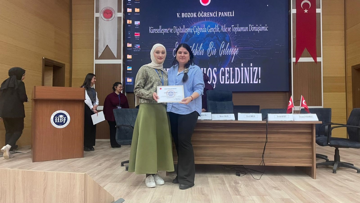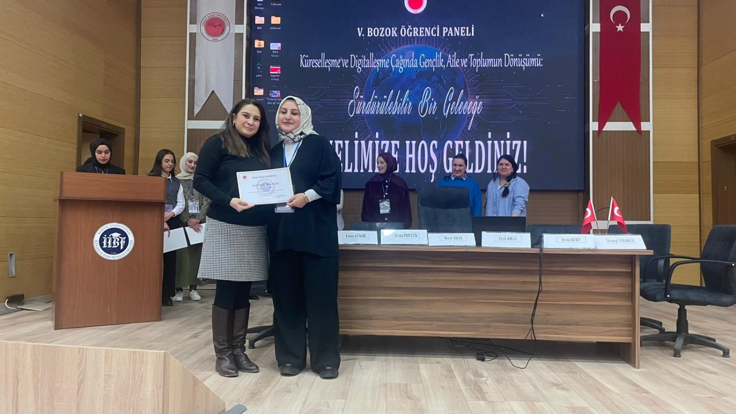 Fakültemiz tarafından düzenlenen V. Öğrenci Paneli, “Küreselleşme ve Dijitalleşme Çağında Gençlik, Aile ve Toplumun Dönüşümü: Sürdürülebilir Bir Geleceğe” temasıyla 16–17 Aralık 2025 tarihlerinde gerçekleştirilen oturumların ardından başarıyla tamamlandı. İki gün süren panel, öğrencilerimizin akademik sunum becerilerini geliştirmeleri, güncel toplumsal ve küresel konuları disiplinler arası bir bakış açısıyla tartışmaları açısından önemli bir bilimsel platform sundu.