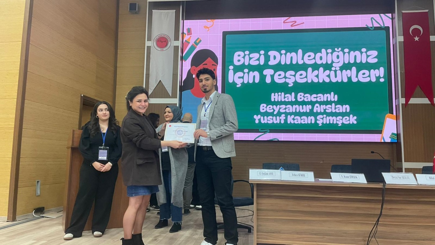 - Yusuf Kaan Şimşek, Hilal Bacanlı ve Beyzanur Arslan, “Dijital Dünyada Etik ve Sorumluluk” başlıklı bildirilerinde, dijital ortamda etik ilkeler ve bireysel sorumluluk kavramlarını tartıştı.