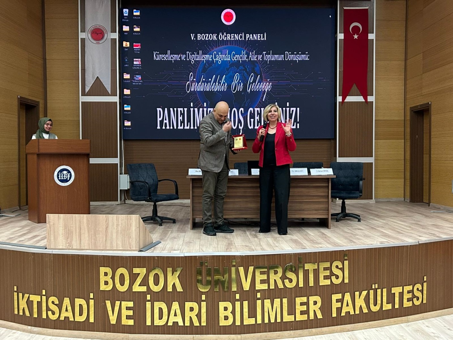 Kapanış programında söz alan Fakültemiz Dekanı Prof. Dr. İbrahim Doğan, Prof. Dr. Hülya Toker’in beş yıldır büyük bir özveriyle paneli düzenlediğini belirterek, bu sürekliliğin fakültemizin akademik kültürüne önemli katkılar sunduğunu ifade etti. Dekanımız konuşmasında, öğrencilere akademik platformlar sunan bu tür organizasyonların fakülte kimliğini güçlendirdiğini vurgulayarak, Prof. Dr. Toker’in emeğinin ve akademik liderliğinin takdire şayan olduğunu dile getirdi. Ayrıca panelin disiplinler arası yapısı ve yüksek katılımla gerçekleştirilmiş olmasının, organizasyonun başarısını açıkça ortaya koyduğunu belirtti.