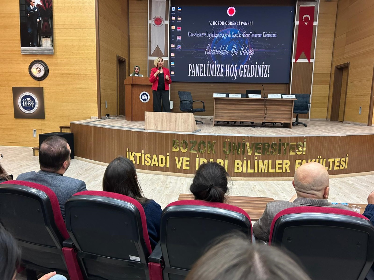Panelin birinci günü, 16 Aralık 2025 Salı günü saat 09.30’da gerçekleştirilen açılış programı ile başladı. Saygı duruşu ve İstiklal Marşı’nın ardından yapılan protokol konuşmalarında Yozgat Bozok Üniversitesi Rektör Yardımcısı Prof. Dr. Tansel Hacıhasanoğlu ile Fakültemiz Dekanı Prof. Dr. İbrahim Doğan söz aldı. Konuşmalarda, öğrenci panellerinin akademik gelişim, bilimsel üretim ve üniversite kültürü açısından taşıdığı öneme vurgu yapıldı. Her iki konuşmacı da panelin hazırlanmasında gösterdiği özverili çalışmalardan dolayı Sempozyum Düzenleme Kurulu Başkanı Prof. Dr. Hülya Toker’e teşekkür etti.