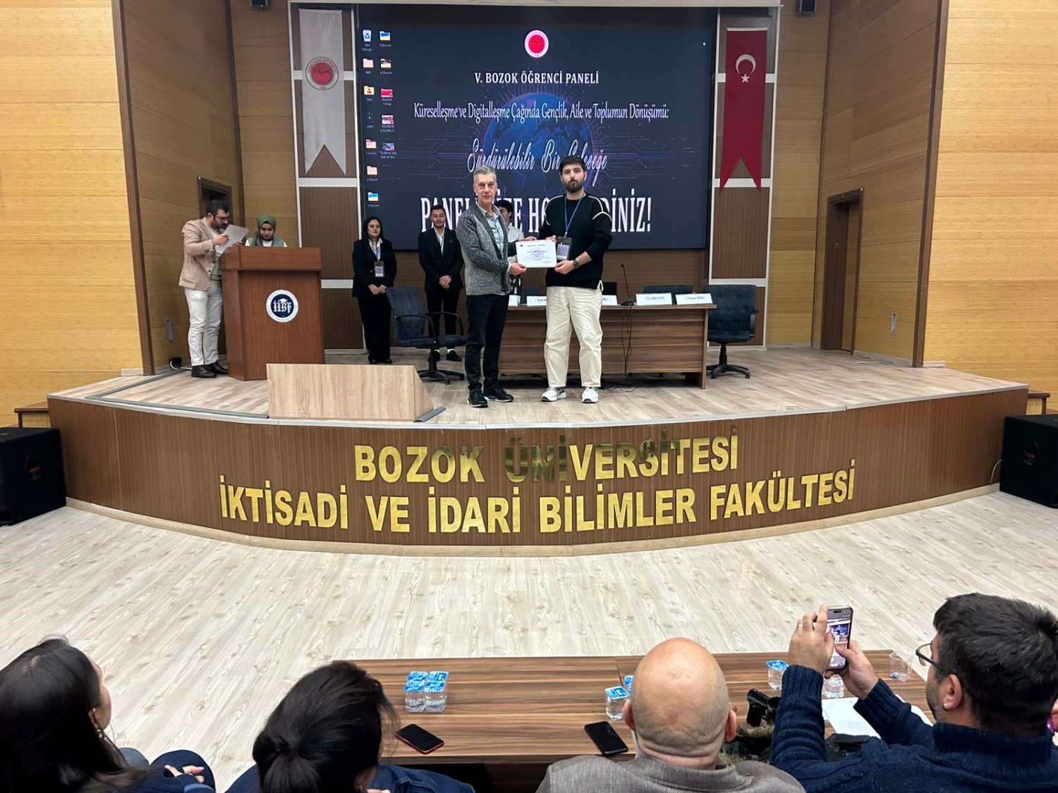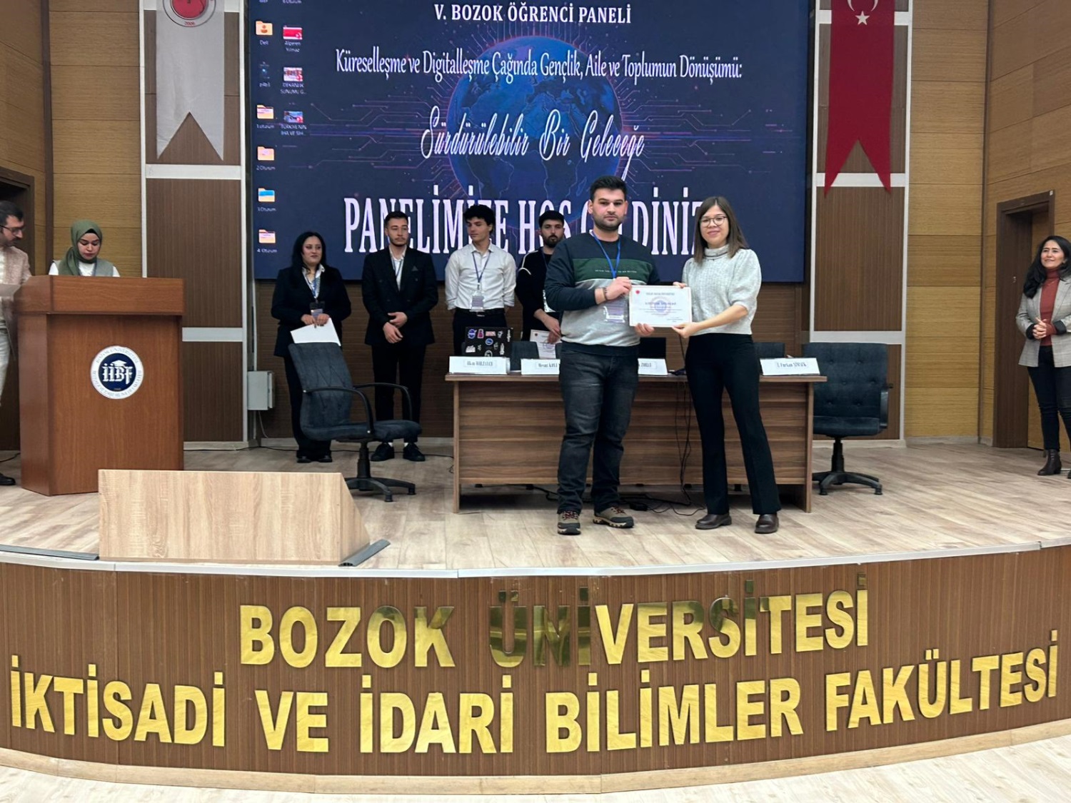 Panel kapsamında, her oturumun sonunda, sunum yapan öğrencilere katılım belgeleri, sempozyumu dinleyici olarak takip eden akademisyenler tarafından tek tek takdim edildi.