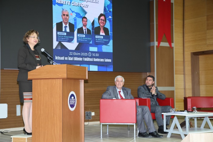Fakültemiz Uluslararası İlişkiler Öğretim Üyesi Doç. Dr. Mustafa Özalp’in moderatörlüğünü yaptığı panelde, Orta Doğu Teknik Üniversitesi (ODTÜ) Öğretim Üyesi ve Ankara Küresel Danışmanlık Grubu (ANKUDA) kurucusu Prof. Dr. Hüseyin Bağcı ile ANKUDA Kurucusu Dr. Gülsüm Akbulut panelist olarak yer aldı.
