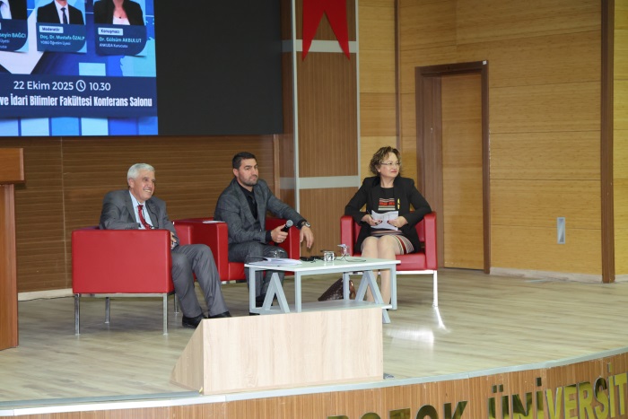 İktisadi ve İdari Bilimler Fakültesi Konferans Salonu’nda düzenlenen panele Üniversitemiz Rektörü Prof. Dr. Evren Yaşar, Üniversitemiz Genel Sekreteri Doç. Dr. Mustafa Kocakaya, Fakültemiz Dekanı Prof. Dr. İbrahim Doğan, akademisyenler ve çok sayıda öğrenci katıldı.