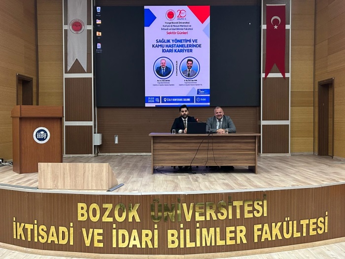 Yozgat Bozok Üniversitesi Kariyer ve Mezun Merkezi ile İktisadi ve İdari Bilimler Fakültesi iş birliğinde düzenlenen “Sektör Günleri” etkinlikleri kapsamında, “Sağlık Yönetimi ve Kamu Hastanelerinde İdari Kariyer” başlıklı program 31 Mart 2026 tarihinde saat 11.00’de Fakültemiz Konferans Salonu’nda gerçekleştirildi.