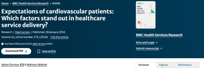 Durmuş, A., & Akbolat, M. (2026). Expectations of cardiovascular patients: Which factors stand out in healthcare service delivery? BMC Health Services Research.