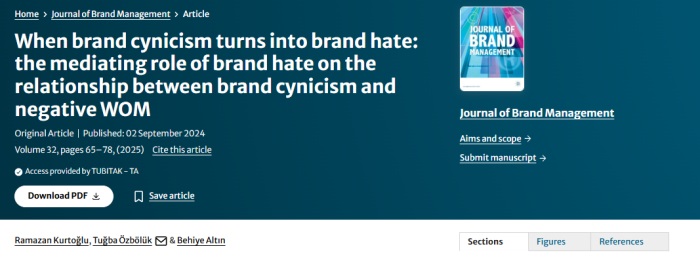 Kurtoğlu, R., Özbölük, T., & Altın, B. (2025). When brand cynicism turns into brand hate: the mediating role of brand hate on the relationship between brand cynicism and negative WOM. Journal of Brand Management, 32, 65–78.