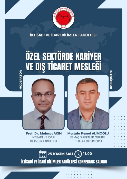 Söyleşi: "Özel Sektörde Kariyer ve Dış Ticaret Mesleği" Konuk: Mustafa Kemal Alimoğlu21.11.2025 13:44